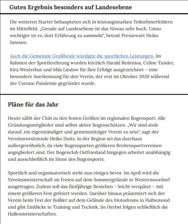 Aktuelle Neuigkeiten beim Bogenclub Ostfriesland